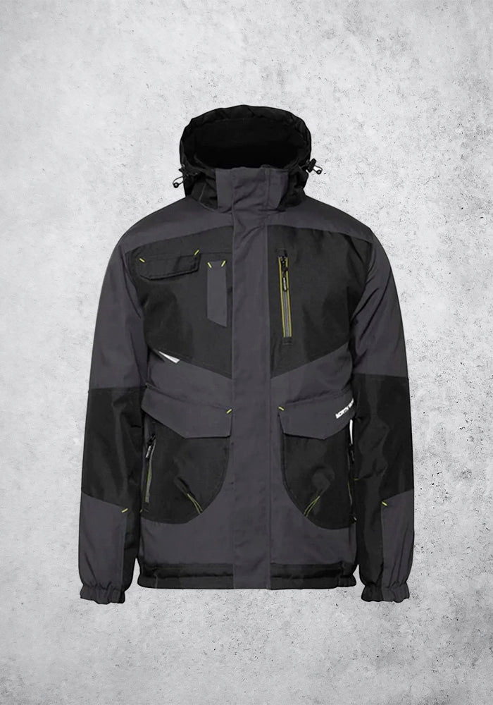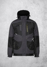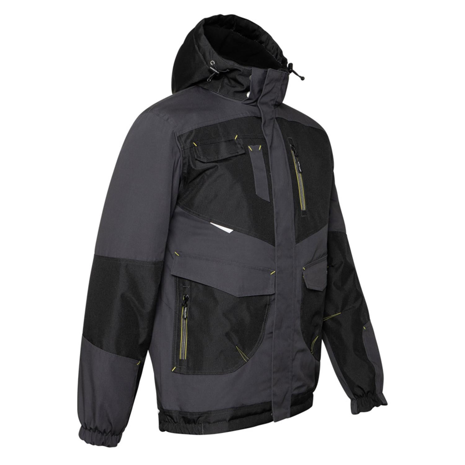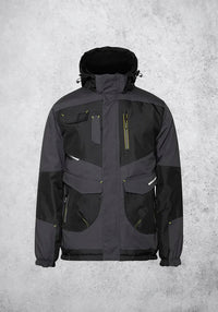 Spécificités : Renforts dos, coudes et poches, Capuche réglable, Col montant, Mentonnière, Poignets élastiqués, Rallonge dos, 8 poches : 3 poches plaquées à rabat, 1 poche stylos, 3 poches zippées, 1 poche intérieure, 1 porte-badge, Zip intérieur pour personnalisation.