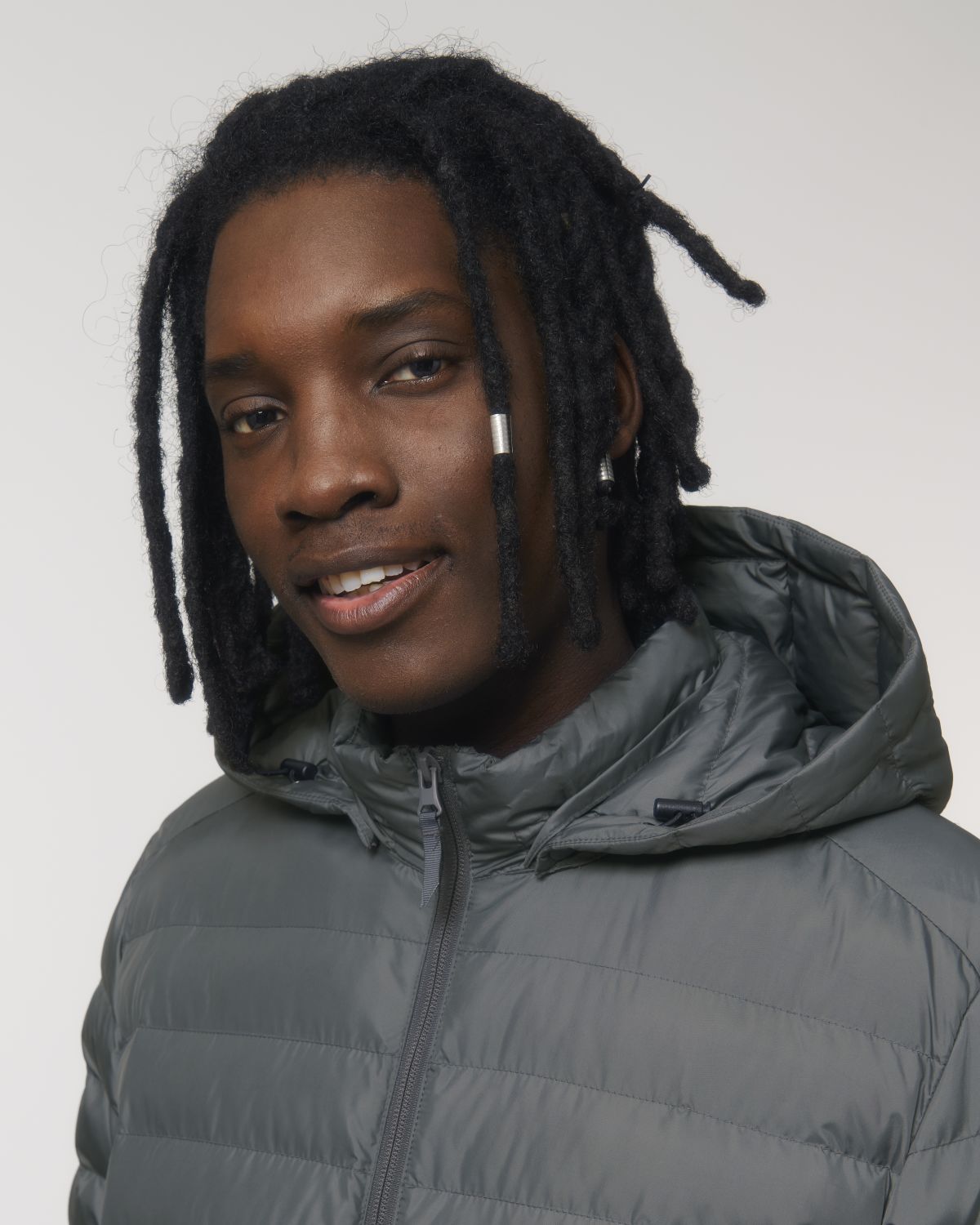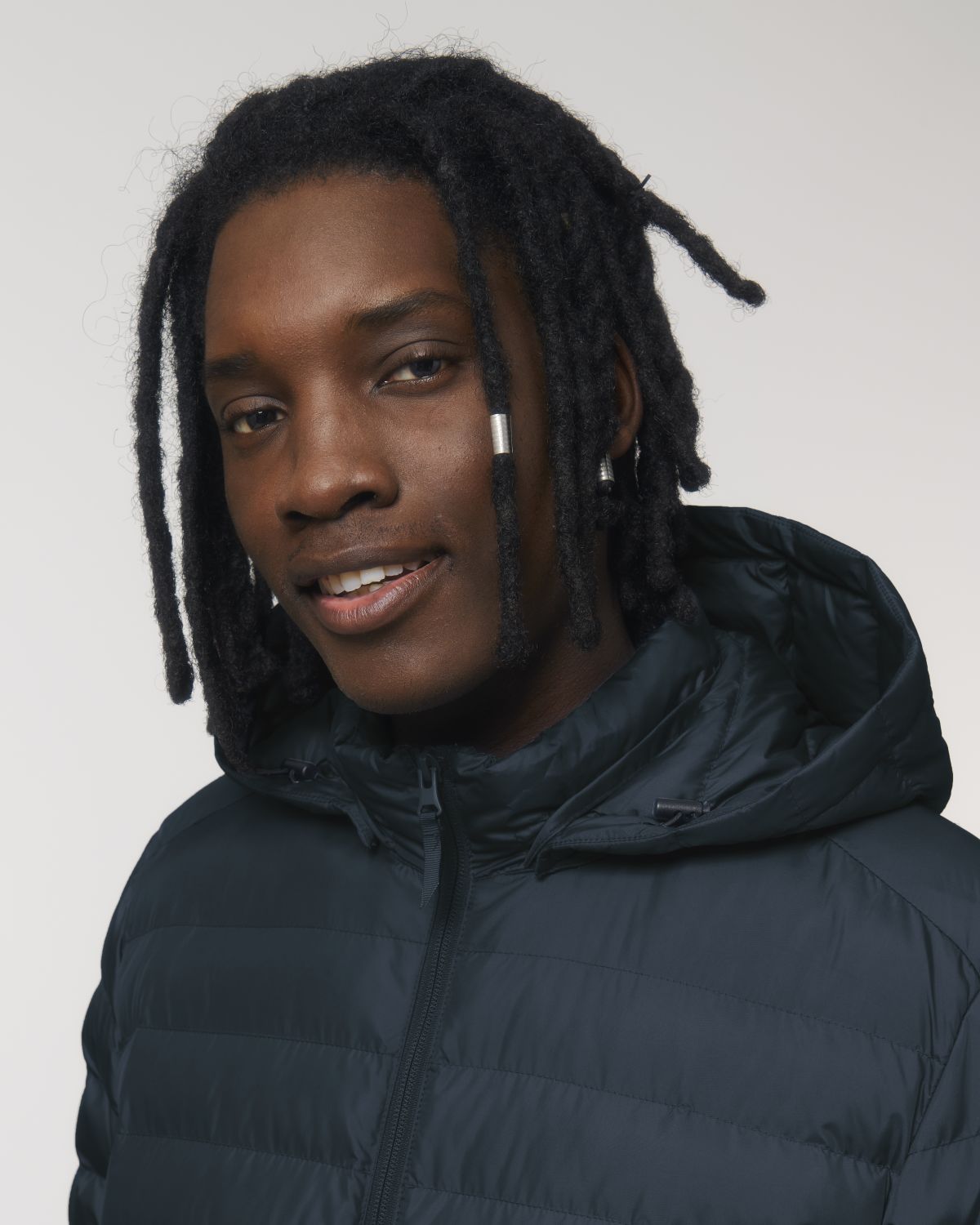 - Col haut avec capuche amovible et boutons pressions métalliques mats invisibles